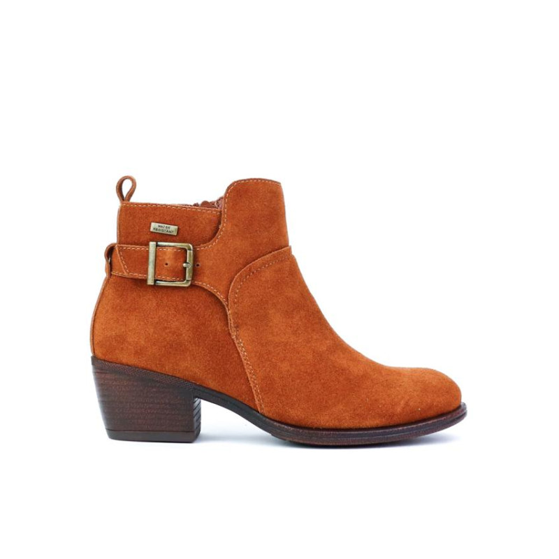 Botin serraje resistente al agua, tacon 5cm. Adorno hebilla. Cremallera interior