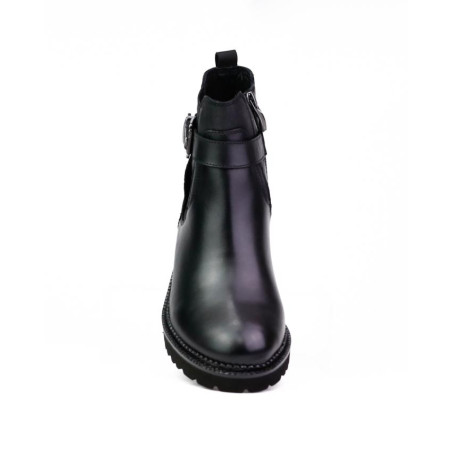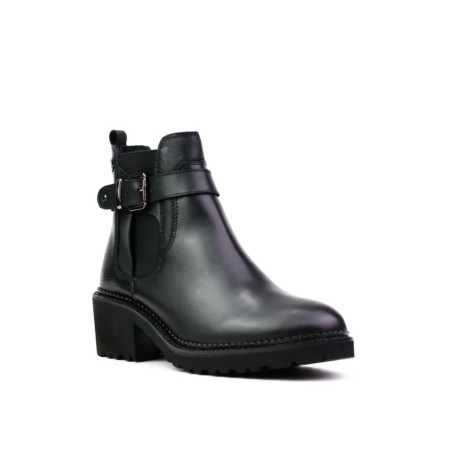 botin negro con elastico y adorno hebilla. Cremallera interior