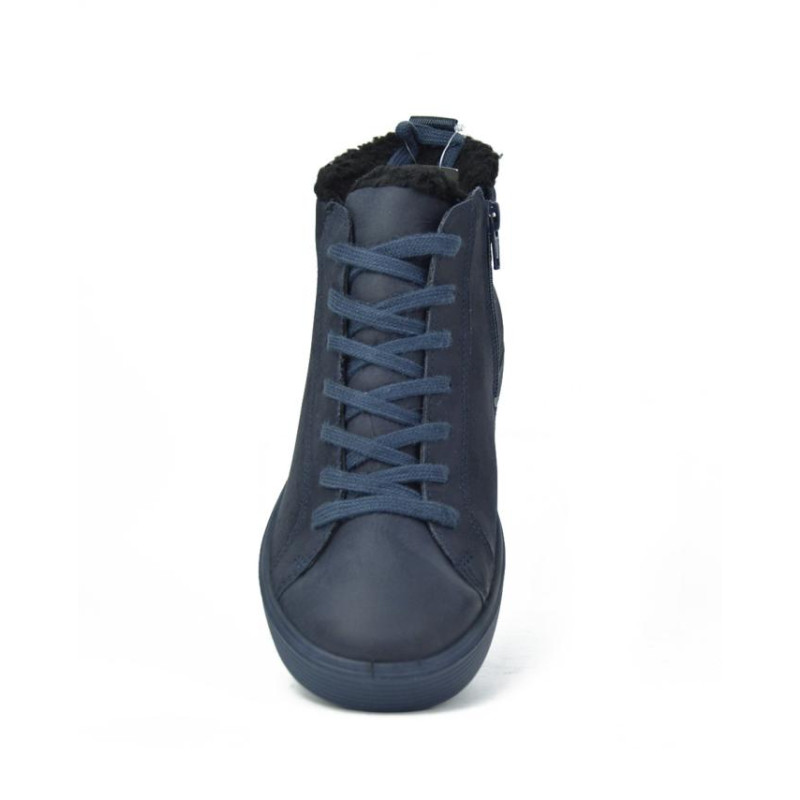 Botines hombre ecco fabricado en piel marino, cierre de cordones y cremallera latera para facilitar la puesta y retirada del producto, forro combinado de borrego en color marino, caña de 10 cm altura, suela personalizada de 2 cm de altura.Composición: Empeine: Piel. Forro: Textil. . Suela: Fibra sintética. Componente principal: Piel