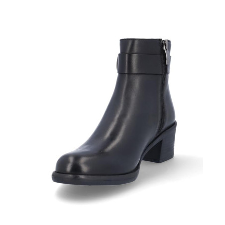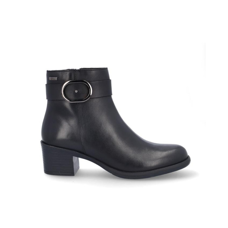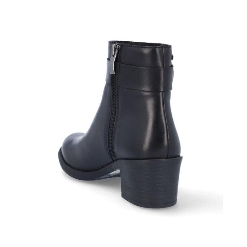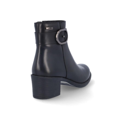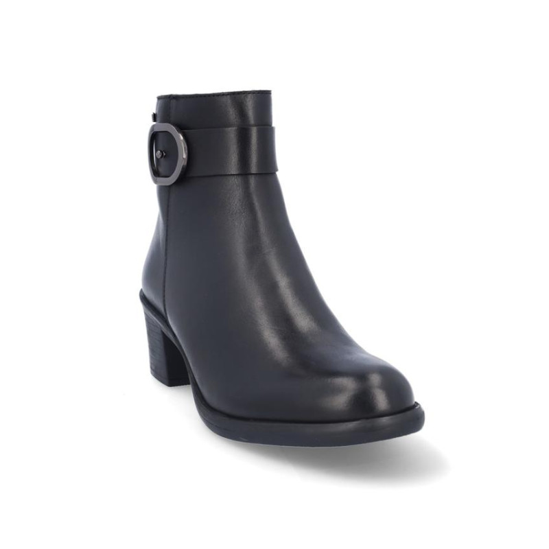 Botines de señora Nature fabricados en piel color negro. Membrana resistente al agua y tecnología XDRY, con hebilla decorativa en parte exterior y cremallera en parte interior para facilitar la puesta y retirada del producto. Forro textil con vista de piel, plantilla textil, altura de caña 13 cm, suela con tacon de 5 cm y plataforma de 1 cm altura. Composición: Empeine: Piel. Forro: Piel/textil. Plantilla: Textil. Suela: Fibra sintetica. Componente principal: Piel