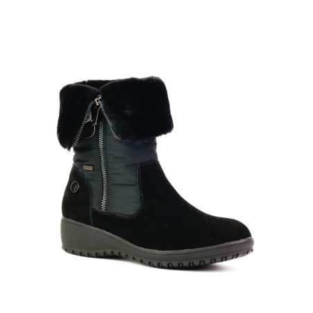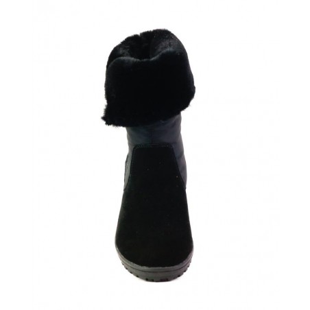 BOTIN cuña baja combinado piel y serraje. Forro pelo negro. Tejido waterproof.