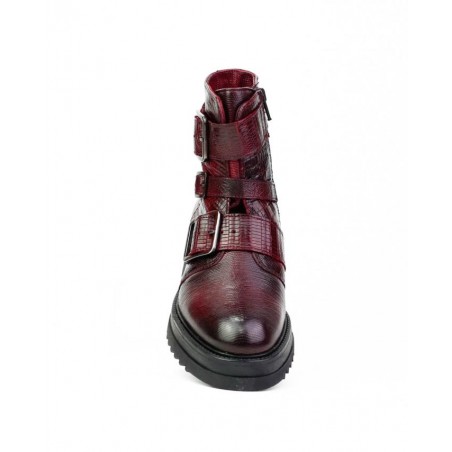 Botin piel estilo militar con cremallera piel grabada