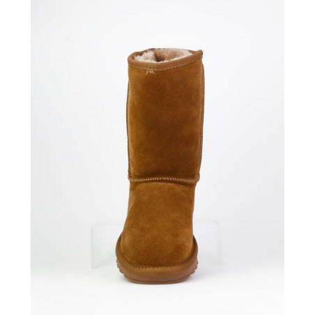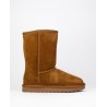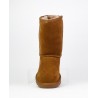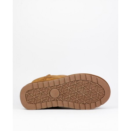 Botines planos mujer, altura caña 19,5 cm., color havana, piel serraje, forro pelo, piso goma 2,5 cm.
