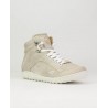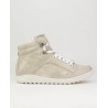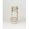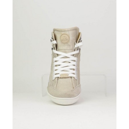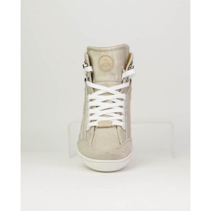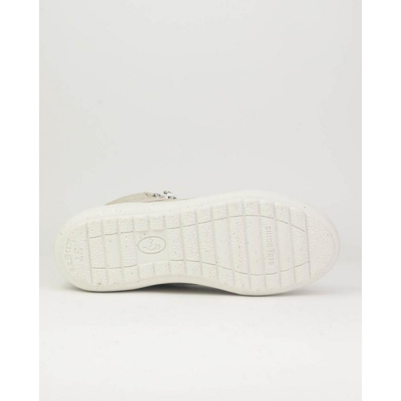 Botín tobillero mujer, textil jeans beige, altura caña 11 cm, cierre de cordones, suela de 2 cm de altura, forro textil, plantilla extraible termoconformada
