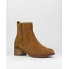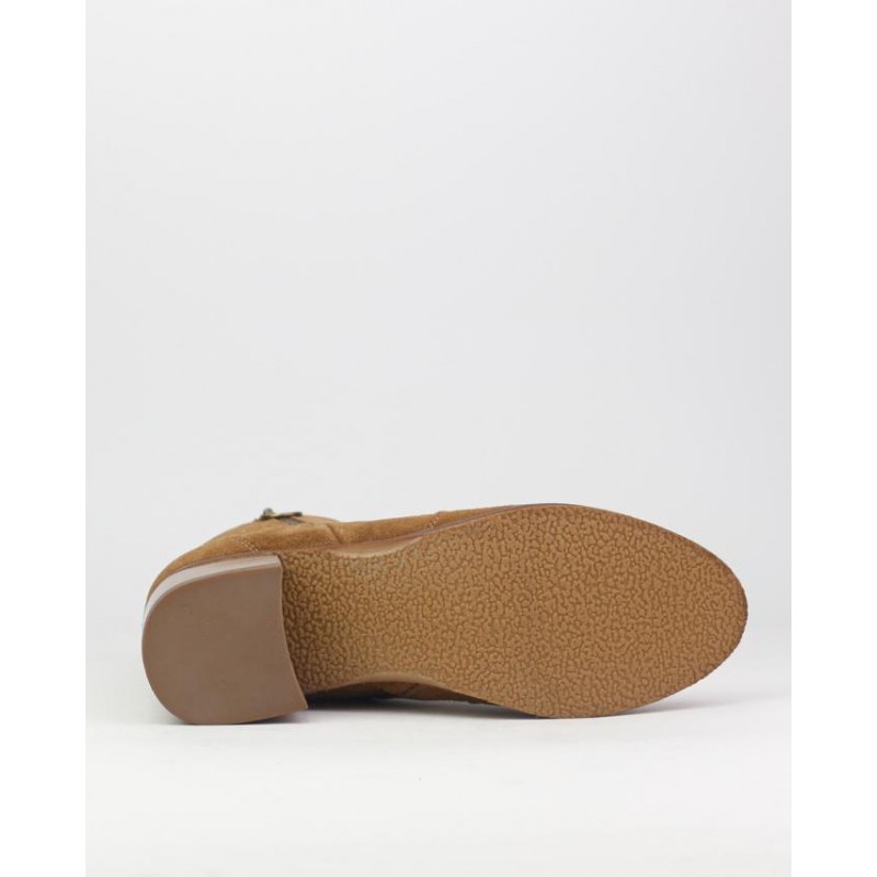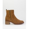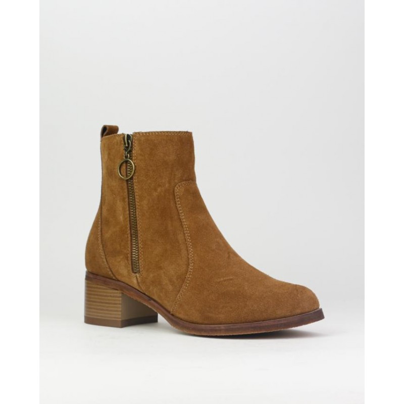 Botin Bonaventure mujer en cuero. Fabricado en serraje color cuero. Forro en tejido muy calido. Cremallera exterior adorno, y una cremallera interior para uso, y facilitar la puesta y retirada del pie. Altura de tacón 5 cm y planta de goma en puntera.