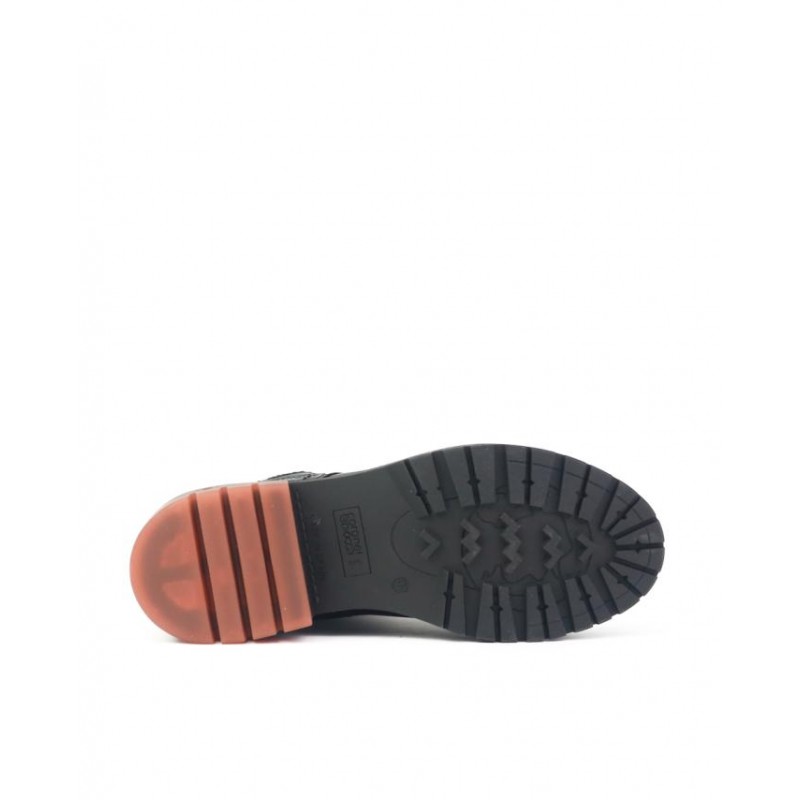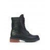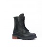 Botín con cordones Coronel Tapiocca Mujer Negro. Fabricado en piel vacuno negro de primera calidad. Cierre cordones para ajuste al pie, y una cremallera interior para facilitar la puesta y retirada del pie. Altura de suela en tacón 4.5cm y 2 cm de plataforma. El tacón es doble siendo rojo transparente la parte visible. Altura de caña 17cm. Plantilla extraible termoconformada muy cómoda. Fabricado en España en fabrica propia.