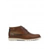 Botines de hombre Coronel Tapiocca water resistant. Fabricados en piel vacuno de calidad en color cuero con detalles en piel en color marrón. Altura de caña 9 cm. Suela color crema con altura de 2.5 cm. Forro piel combinado con tejido con membrana resistente al agua con tecnologia XDRY. Plantilla extraible muy cómoda. Cierre cordones como ajuste al pie. Fabricado en España