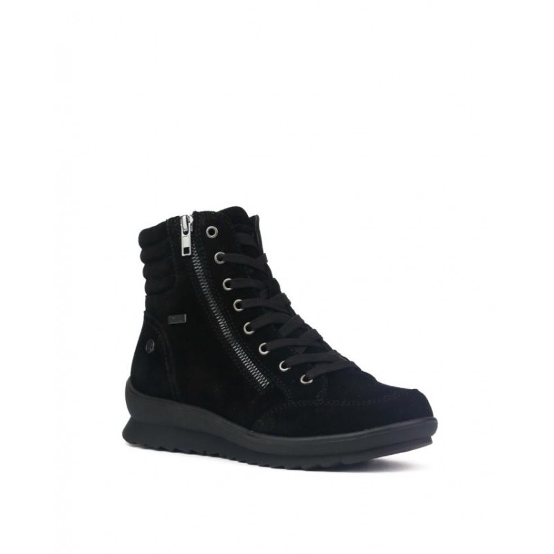 Botines con cordones Coronel Tapiocca Mujer Negro. Fabricados en serraje WATER RESISTANT. Doble cremallera para facilitar la puesta y retirada. Forro tejido calido. Cordones para ajuste al pie. Altura de caña 12 cm. Adorno acolchado trasero. Suela de 4 cm de altura en talón y dos cm en plataforma.