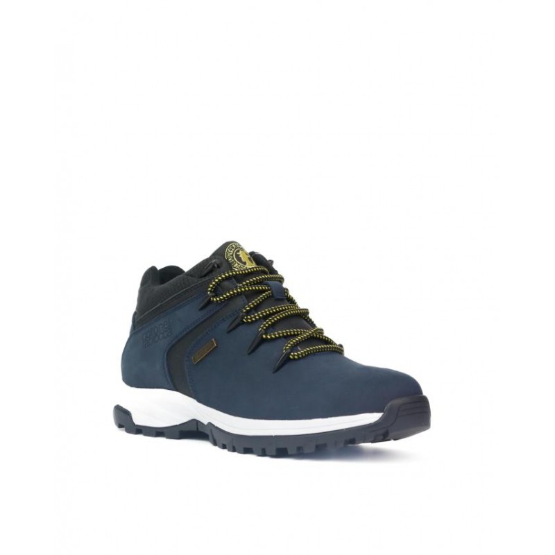 Botines Coronel Tapiocca hombre en marino. Fabricados en nobuck marino, poseen membrana resistente al agua. WATERPROOF. Cierre cordones con ganchos para que corra la trencilla de dos tonos. Suela de phylon ligero de 3.5 cm y goma en planta. Forro textil con membrana. Cuello en tejido tecnico cuadros. Altura de caña 8.5 cm. Composición: Empeine: Piel. Forro y plantilla: Textil. Suela: Eva + caucho. Componente principal: Piel