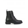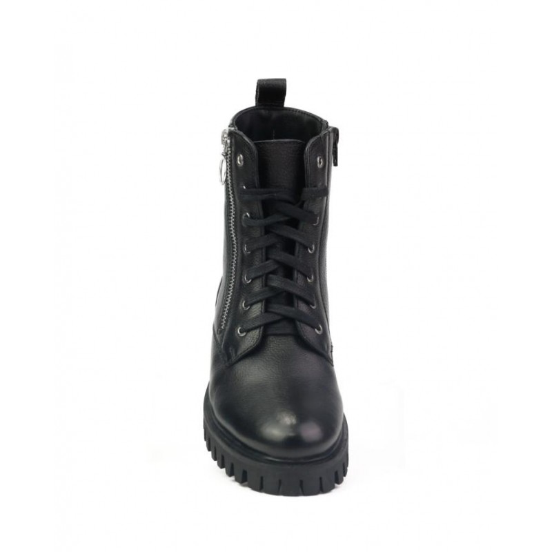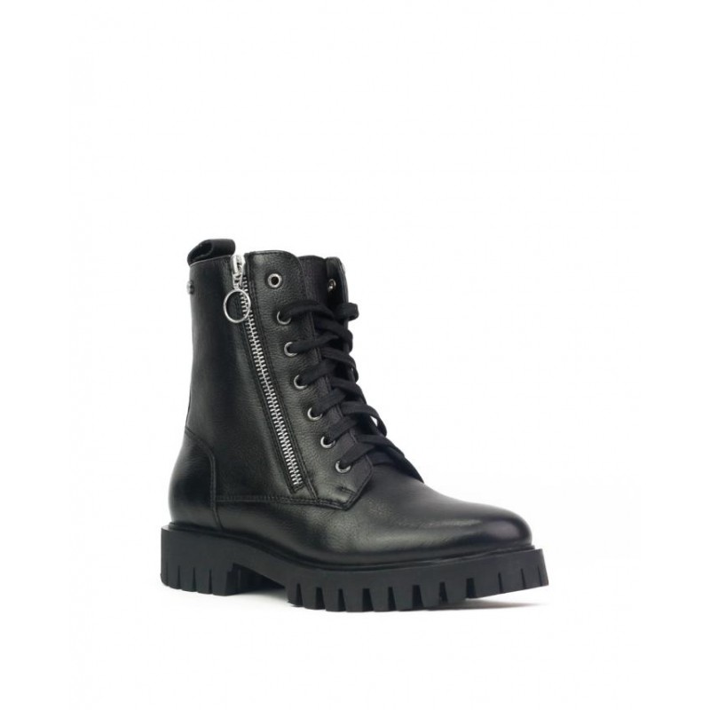Botines de tacón KangaROOS mujer. Fabricado en piel vacuno de calidad en color negro. Forro interior en textil y plantilla interior piel. Altura de caña 15 cm. Cremallera interior para puesta y retirada el producto y cordones para ajustar al pie. Tirador trasero. Altura de tacón 3 cm, altura plataforma 2 cm.