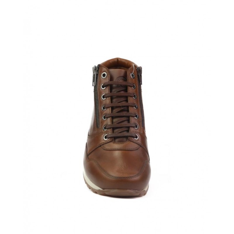Botines KangaROOS Hombre. Fabricados en piel vacuno de primera calidad en color cuero. Cierre cordones como ajuste al pie y una cremallera metálica y otra interior de uso para facilitar puesta y retirada del pie. Forro interior piel combiando con textil. Plantilla extraible muy comoda. Altura de suela 2.5 cm. Fabricado en España en fabrica propia.