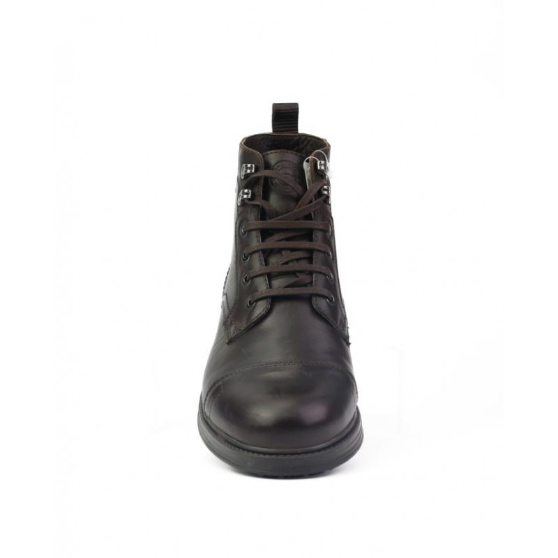 Botines KangaROOS Hombre. Fabricados en piel vacuno marrón chocolate de primera calidad. WATER RESISTANT. Forro con membrana resistente al agua con tecnología XDRY. Cierre cordones como ajuste al pie. Altura de caña 11.5 cm. Altura de tacón 3.5 cm y plataforma 1.5 cm. Plantilla extraible en tejido muy comodo. Fabricado en España en instalaciones propias.