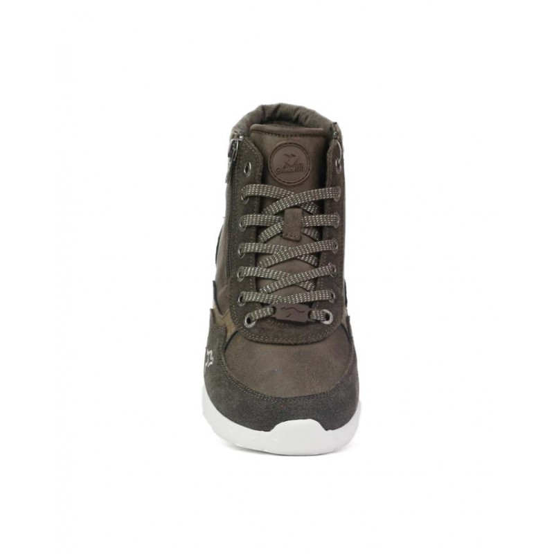 Botines con cordones Mujer KangaROOS. Fabricados en serraje musgo combinado con otros materiales. Cierre cordones para ajuste al pie y cremallera exterior para facilitar la puesta y retirada. Altura de suela 3cm, siendo el material utulizado phylon ligero. Forro tejido. Plantilla interior en tejido muy comodo. Altura de caña 9 cm.