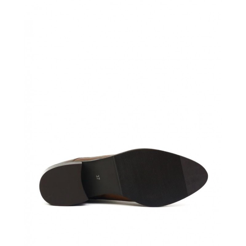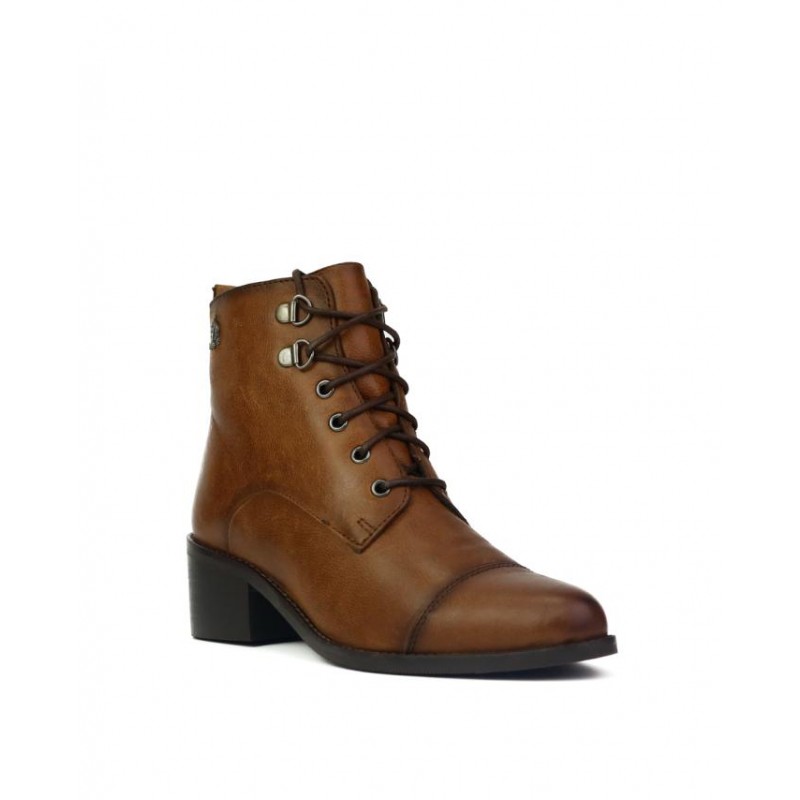 Botines El Caballo Mujer en cuero. Fabricados en piel vacuno premium en color madera. Cierre cordones para ajustar el pie y una cremallera interior para poner y retirar el producto. Forro en piel vacuno y tejido. Plantilla en piel. Altura de caña 10.5 cm. Altura de tacón 5 cm. Dos ganchos en la parte superior. Puntera partida.