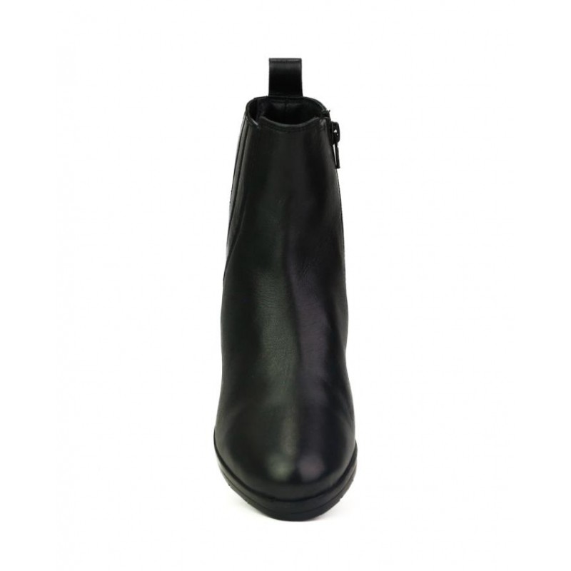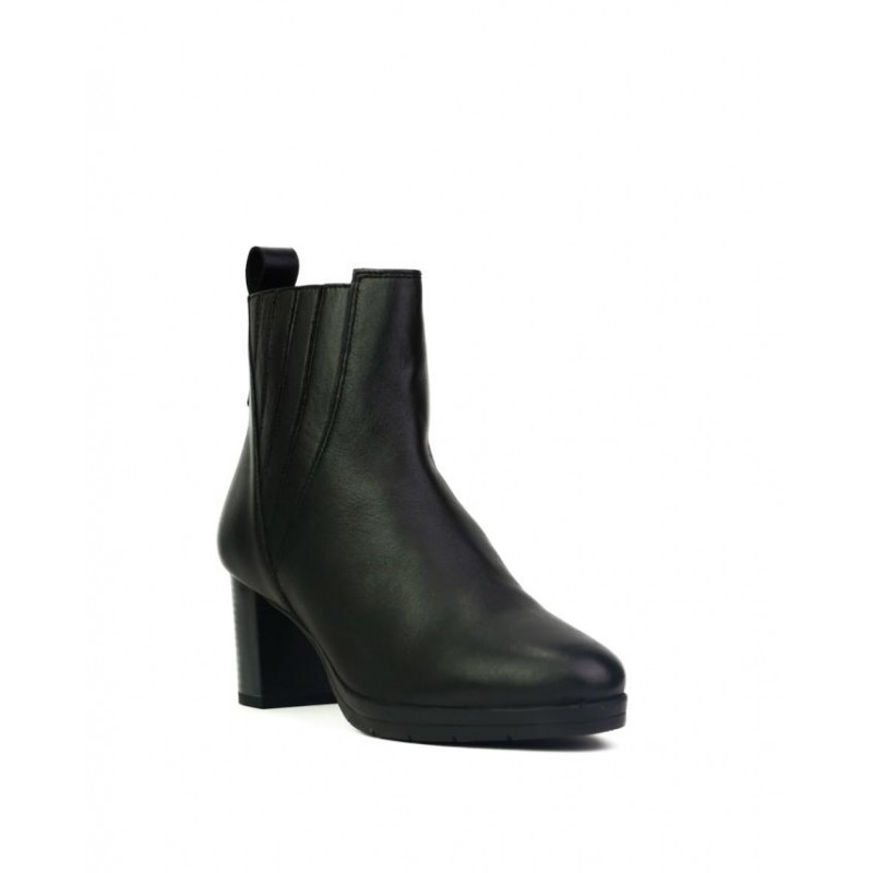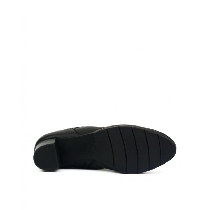 Botin piel vacuno negro. Elastico en caña decorativos. Altura de tacón 6.5 cm y plataforma de 1.5 cm. Forro tejido combinado con piel.