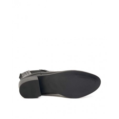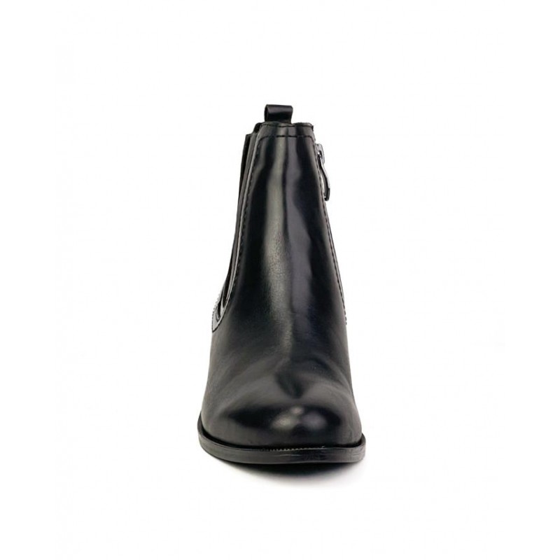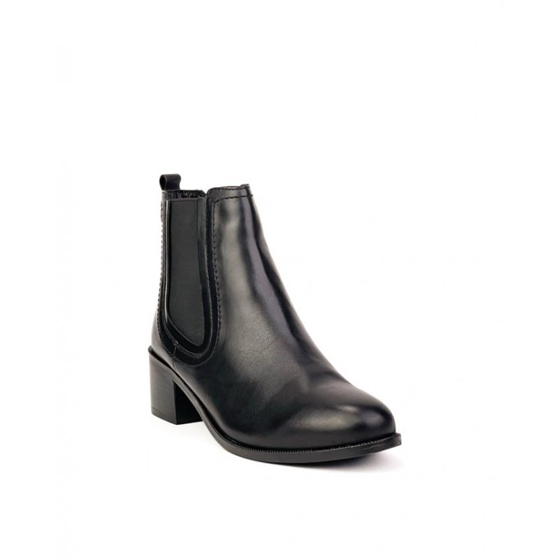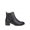 Botin Chelsea en negro con elastico negro. Cierre cremallera interior y elastico. Altura de tacón 4.5 cm. Altura de caña 12 cm