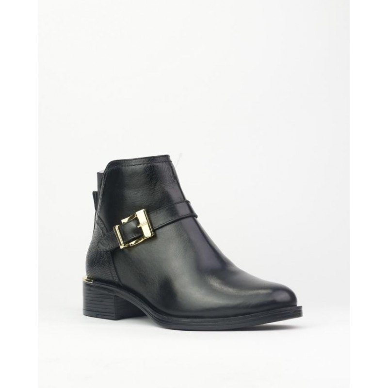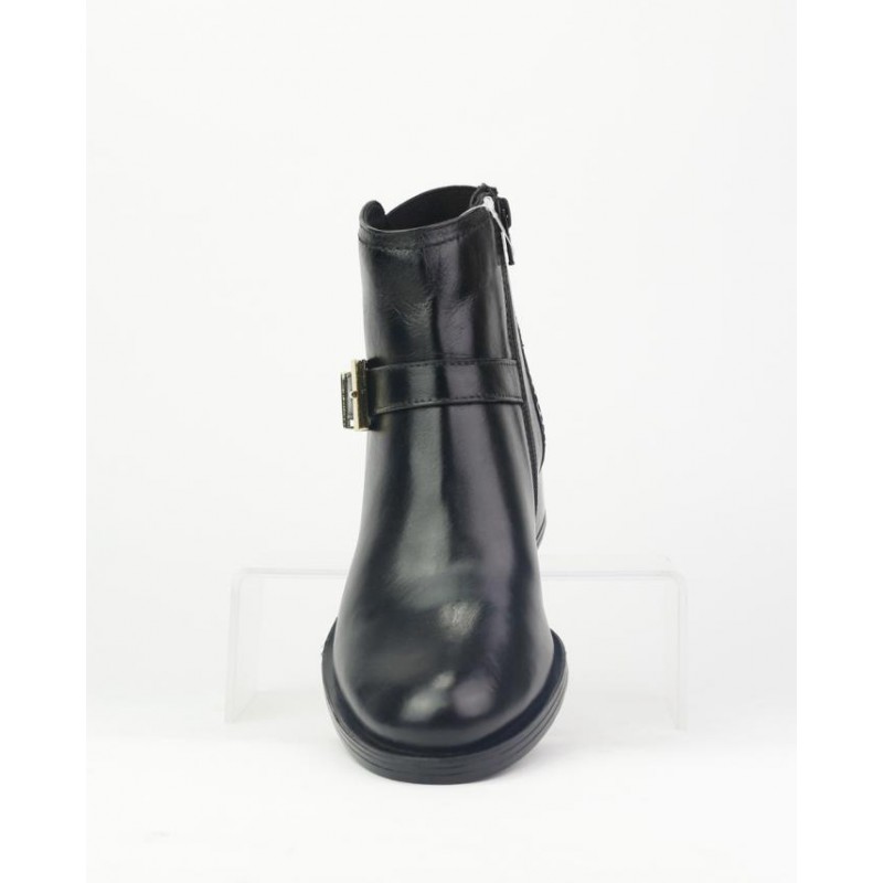 Botin marca Caramelo fabricacion nacional en piel vacuno de primera calidad. Detalles en piel imatacion escama en trasero. Elastico en trasero. Cierre cremallera lateral para facilitar la puesta y retirada del producto. Hebilla decorativa. Altura de caña de botin 10 cm y altura de tacón 6cm. aprox. Forro interior en piel y tejido para aumentar la sensación de confort.