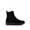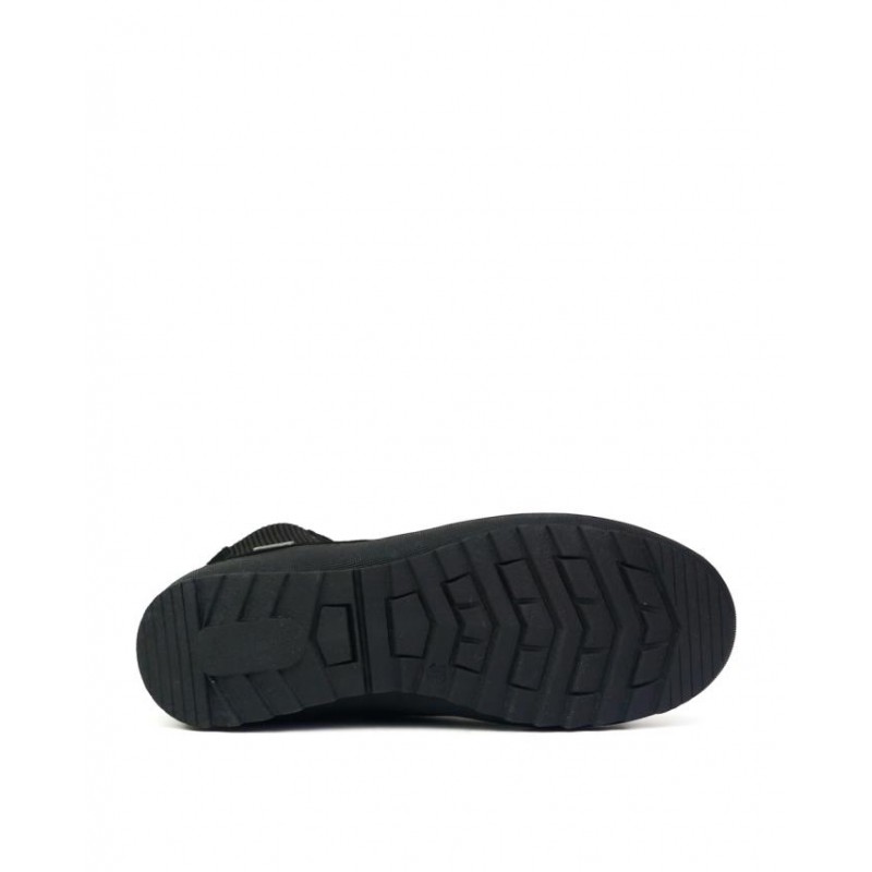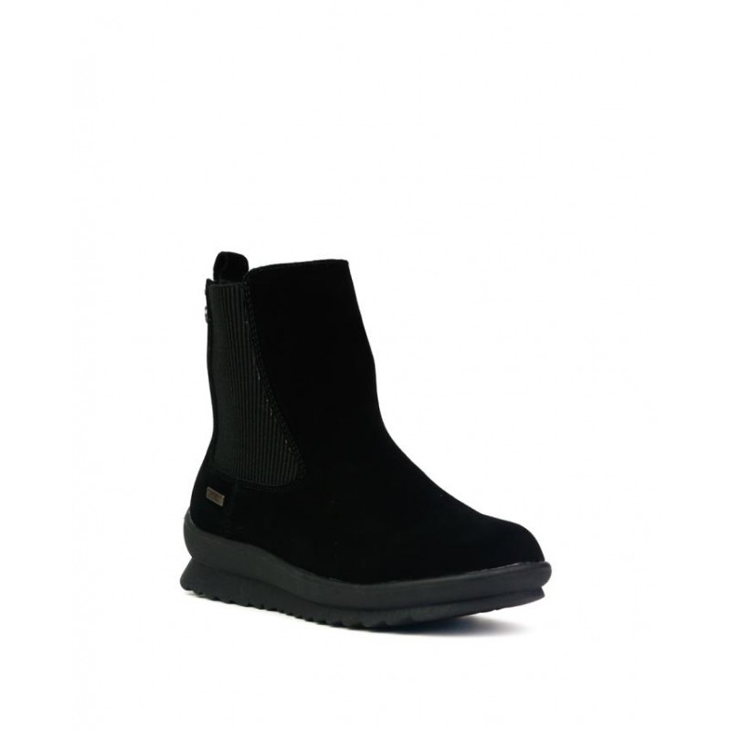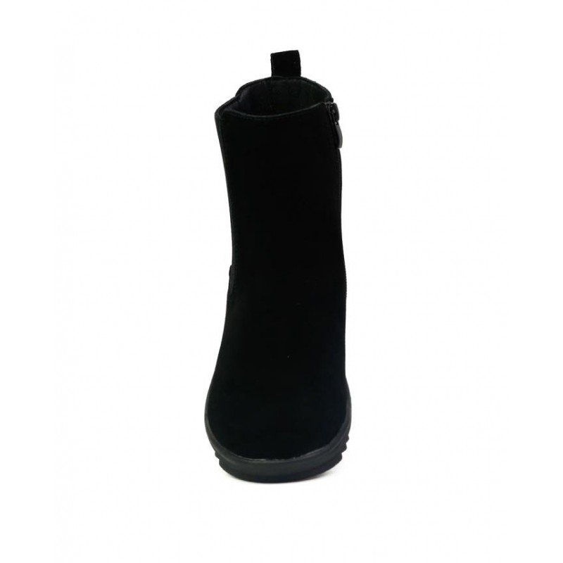 Botines bajos Coronel Tapiocca Mujer en negro. Fabricado en Serraje negro resistente al agua. Cierre cremallera interior. El elastico es un mero adorno. Altura de caña 13 cm. Forro interior textil calido. Altura de suela 4 cm en talón y dos centimetros en plataforma. Resistente al agua.