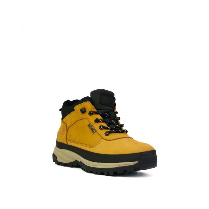 Botines Coronel Tapiocca Hombre WATERPROOF. Fabricado en nobuck mostaza combinado con bandeleta negra. Suela phylon ligero con planta de goma, con altura de 3.5 cm. Altura de caña de botin 9.5 cm. Cierre cordones a dos colores. Tirador trasero en textil