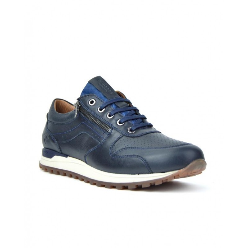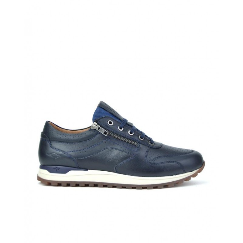 Deportivo caballero Kangaroos en piel marino, cierre de cordones y cremallera exterior, suela de 2,5 cm altura, forro de piel, plantilla extraible, fabricado en España. Composición: Empeine: Piel. Forro: Piel. Plantilla: Textil. Suela: Fibra sintética. Componente principal: Piel