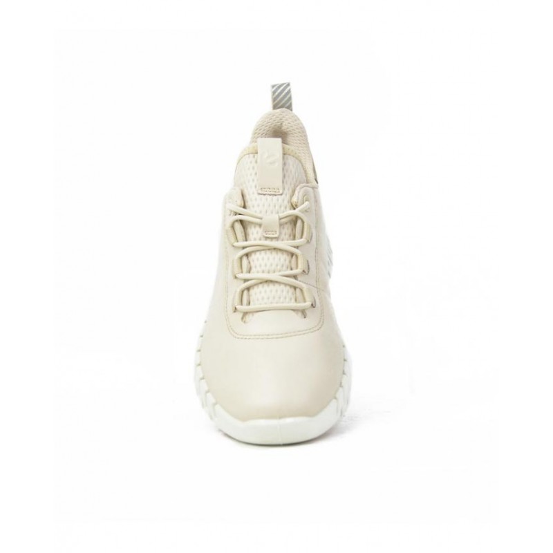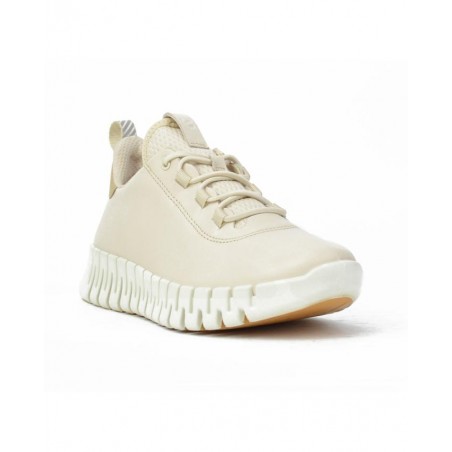 Sneaker cordones marca ECCO modelo PIEL GRUUV. Fabricado en piel Limestone. Suela blanca personalizada.