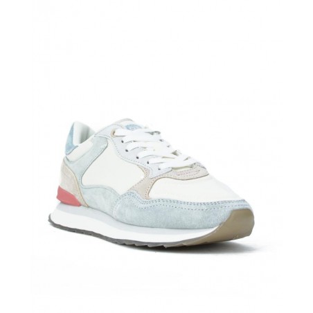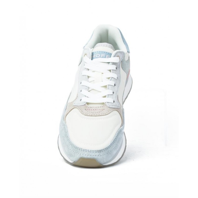 Sneaker cordones marca HOFF modelo CITY SANTA BARBARA. Fabricado en piel celeste y tejido blanco. Suela personalizada.