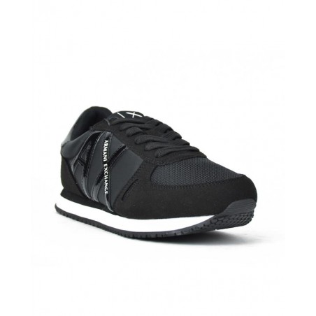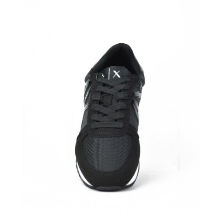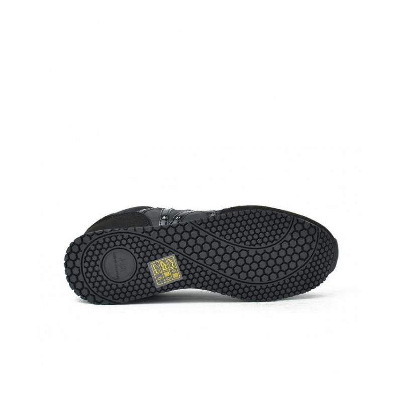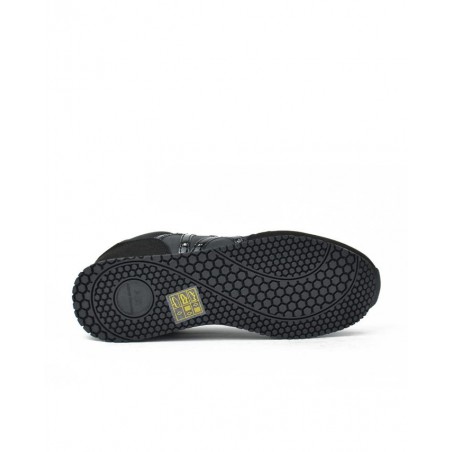 Sneaker cordones marca GEORGIO ARMANI modelo RIO. Fabricado en piel y textil negro. Suela personalizada.