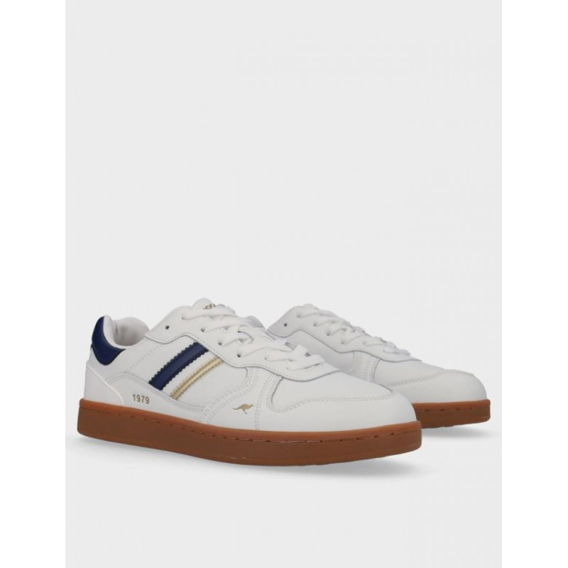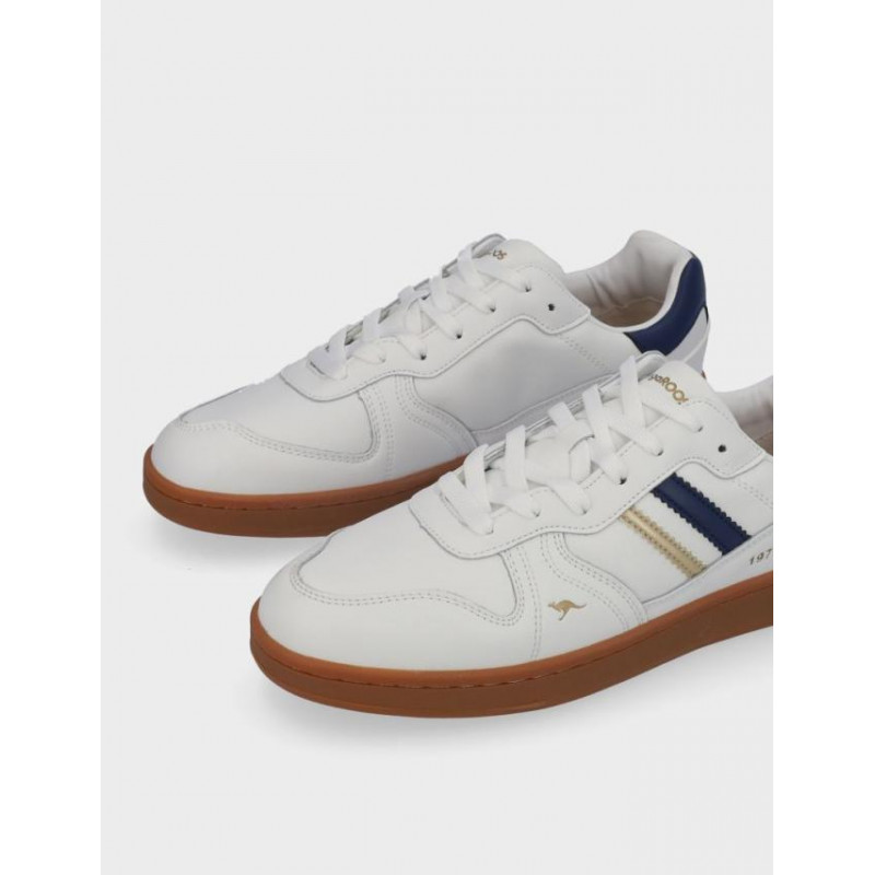 Deportivos chica Kangaroos fabricados en piel blanco, cierre con cordones, suela de 2,5 cm de altura, forro combinado textil y sintetico, plantilla textil extraible termoconformada, fabricado en España. Composición: Empeine: Piel. Forro: textil/sintetico. Plantilla: Textil. Suela: caucho. Componente principal: Piel