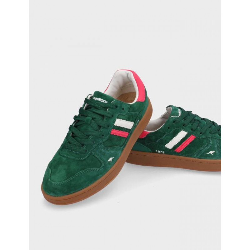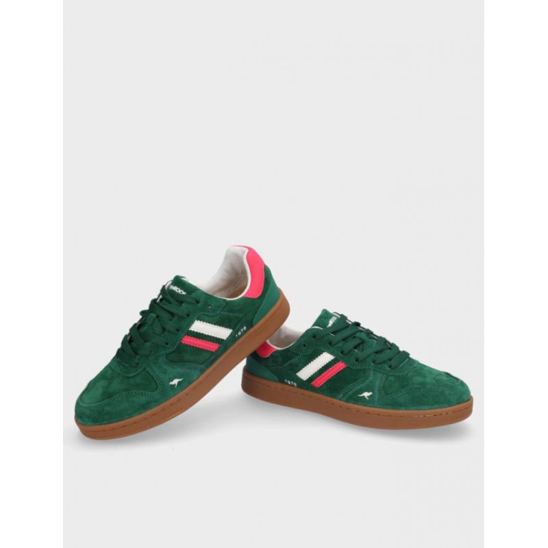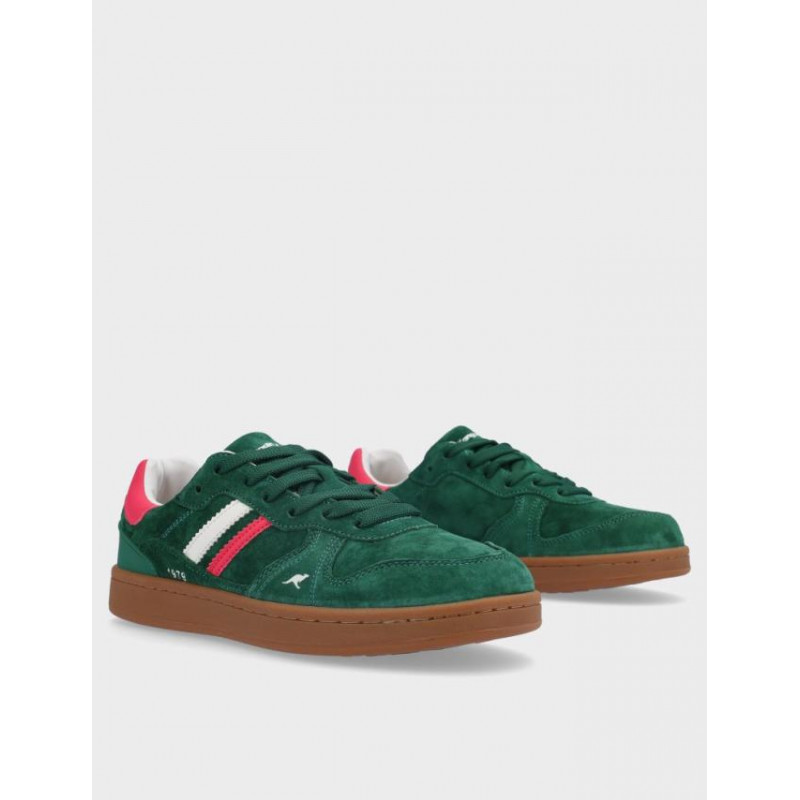Deportivos chica Kangaroos fabricados en serraje verde, cierre con cordones, suela de 2,5 cm de altura, forro combinado textil y sintetico, plantilla textil extraible termoconformada, fabricado en España. Composición: Empeine: Serraje. Forro: textil/sintetico. Plantilla: Textil. Suela: caucho. Componente principal: Serraje