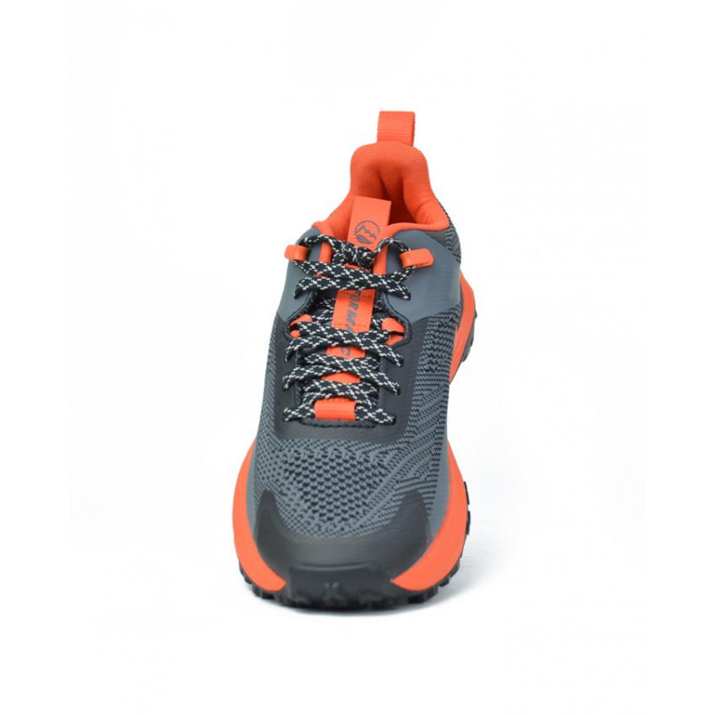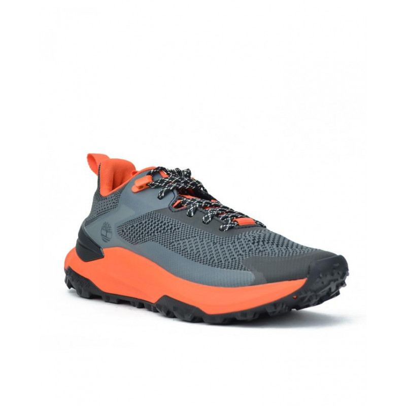 Sneaker caballero motion access low de timberland, en color gris y negro con suela dentada personalizada naranja diseñada para proporcionar una tracción constante y estable. Forro textil y plantilla extraible