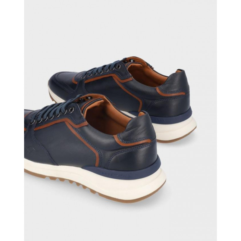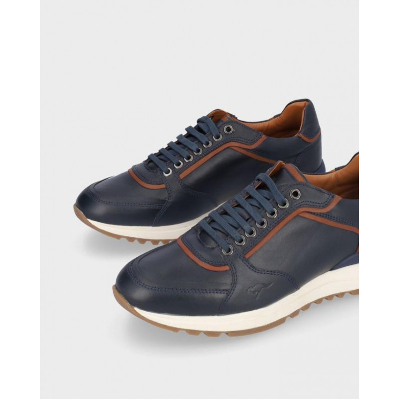 Deportivos hombre kangaroos fabricado en piel marino, cierre de cordones, forro textil, plantilla textil extraible termoconformada, suela de 3 cm de altura, fabricado en España.Composición: Empeine: Piel. Forro: Piel. Plantilla: Textil. Suela: Fibra sintética. Componente principal: Piel