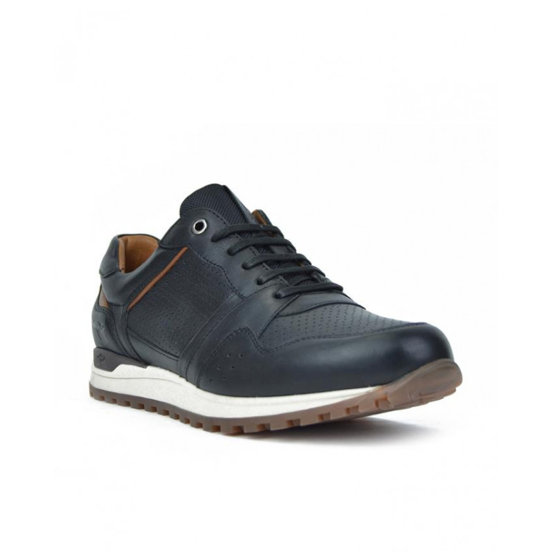 Deportivos hombre Kangaroos fabricados en piel negro perforada, cierre con cordones, forro en piel, suela de 3 cm altura, plantilla textil extraible termoconformada, fabricado en España. Composición: Empeine: Piel. Forro: Piel. Plantilla: Textil. Suela: Fibra sintética. Componente principal: Piel