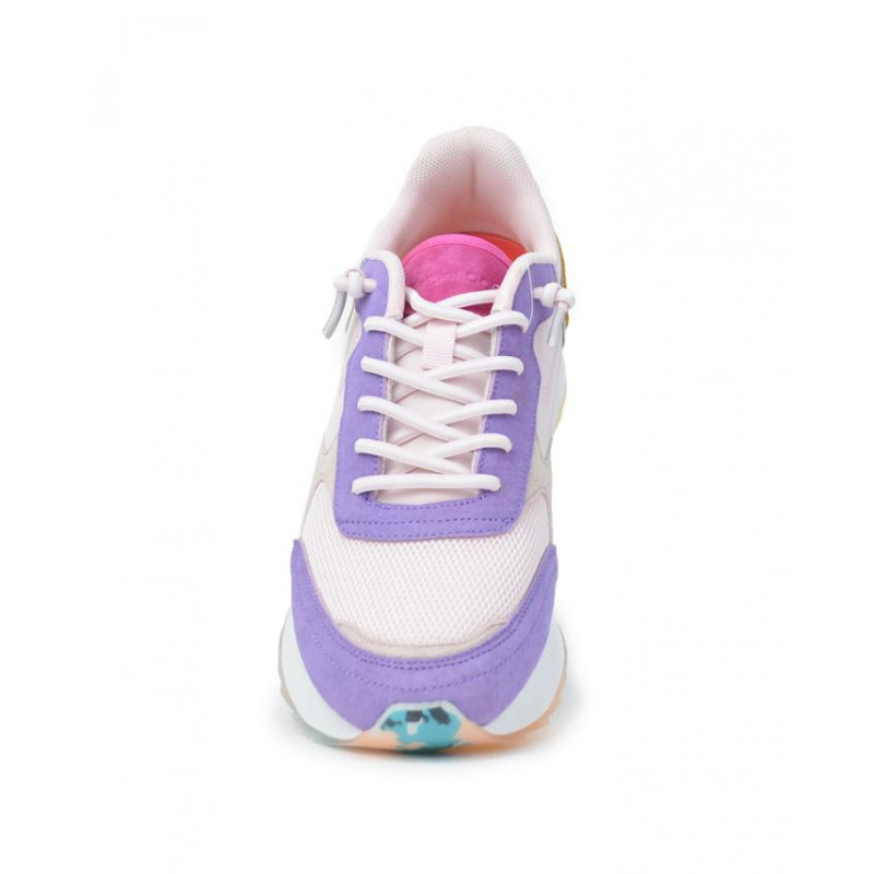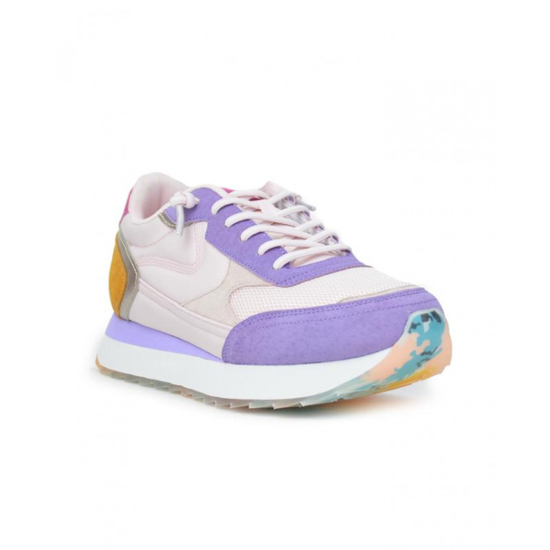 Zapatillas deportivas Kangaroos señora combinado piel/textil rosa-malva, cierre de cordones elásticos, forro textil, plantilla extraible textil, suela ligera de phylon de 3 cm altura. Composición: Empeine: Piel y textil. Forro y plantilla: Textil. Suela: Eva + caucho