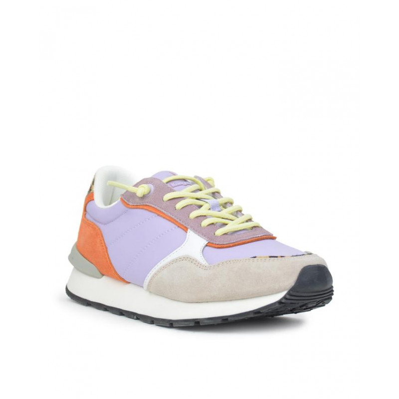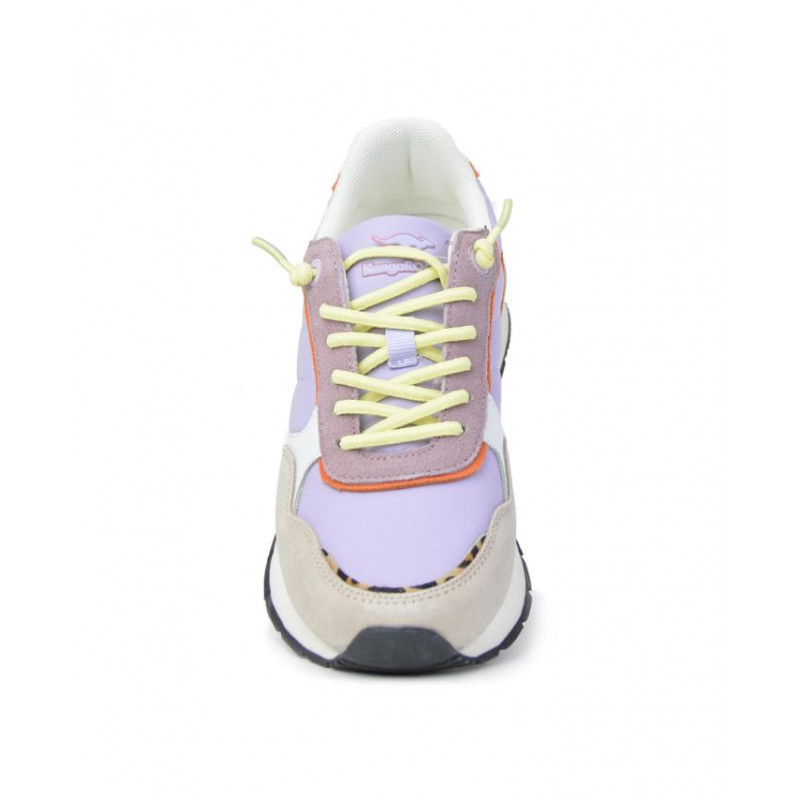 Zapatillas deportivas Kangaroos señora combinado piel/textil malva-beige-naranja, cierre de cordones elásticos, forro textil, plantilla extraible textil, suela ligera de phylon de 2,5 cm altura. Composición: Empeine: Piel y textil. Forro y plantilla: Textil. Suela: Eva + caucho