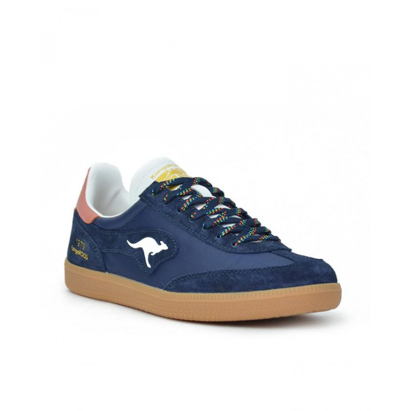 Deportivos chica Kangaroos fabricados en ante/textil marino, cierre con cordones, suela de 2 cm de altura, forro combinado textil y sintetico, plantilla textil extraible termoconformada. Composición: Empeine: Piel y textil. Forro: textil/sintetico. Plantilla: Textil. Suela: fibra sintetica.