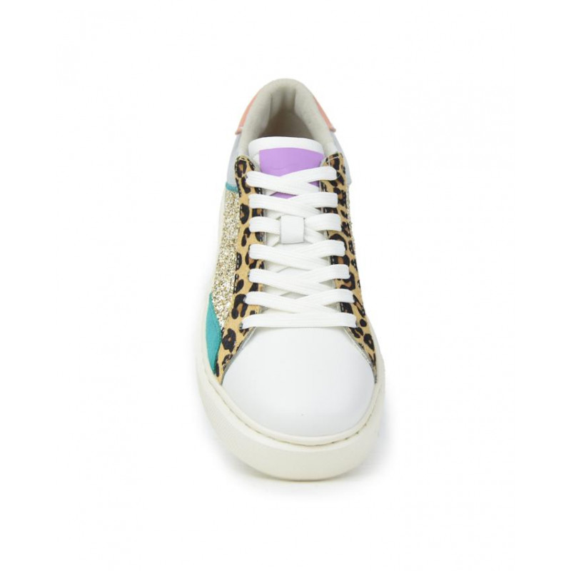 Zapatillas deportivas Kangaroos señora de piel blanco/plata/leopar/brig.beige,cierre de cordones, forro piel/textil, plantilla extraible textil, suela ligera de 3,5 cm altura. Composición: Empeine: Piel y otros materiales. Forro: Piel y textil. Plantilla: textil. Suela: eva