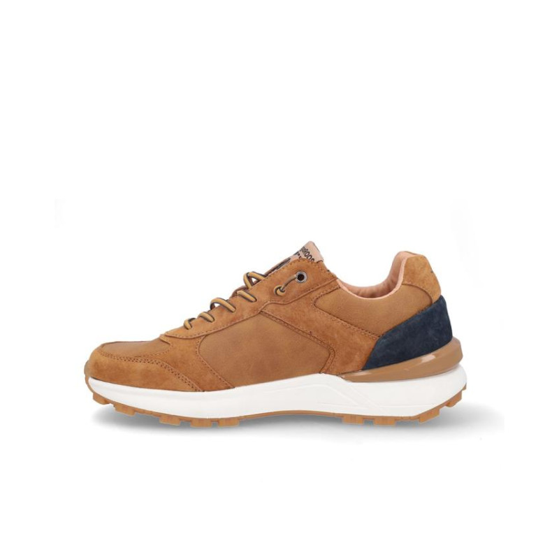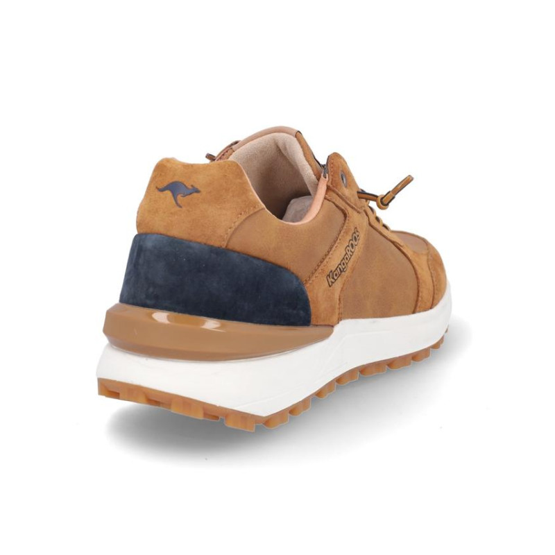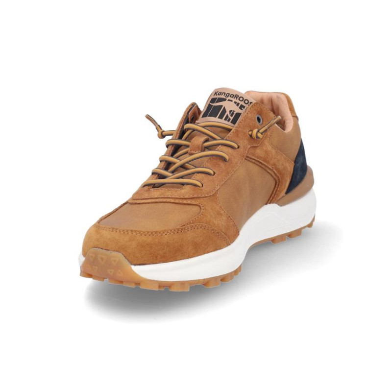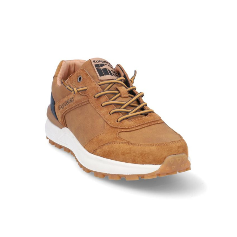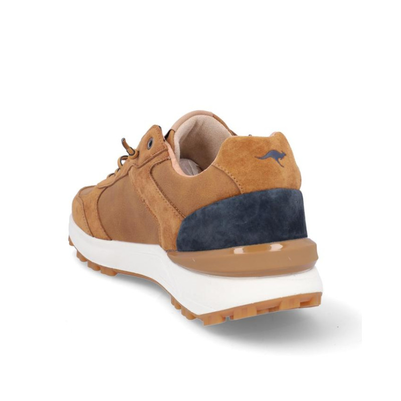Deportivos caballero Kangaroos combinados piel y ante color camel y marino, cierre con cordones, Forro textil con vista de piel, plantilla textil extraible termoconformada, suela de 4,5 cm de altura. Composición: Empeine: Piel/ante. Forro: Piel/textil. Plantilla: Textil. Suela: fibra sintetica. Componente principal: Piel
