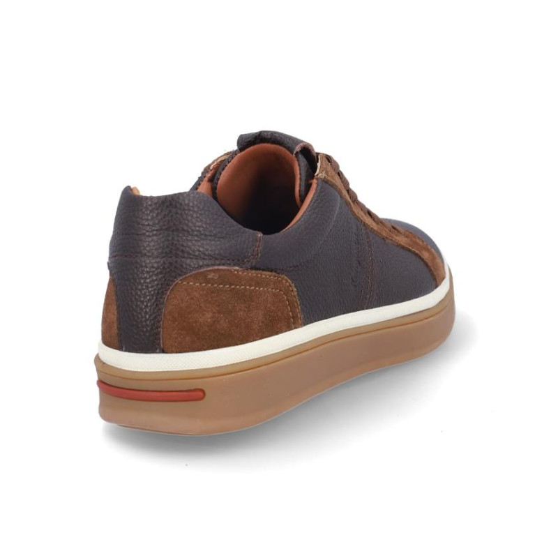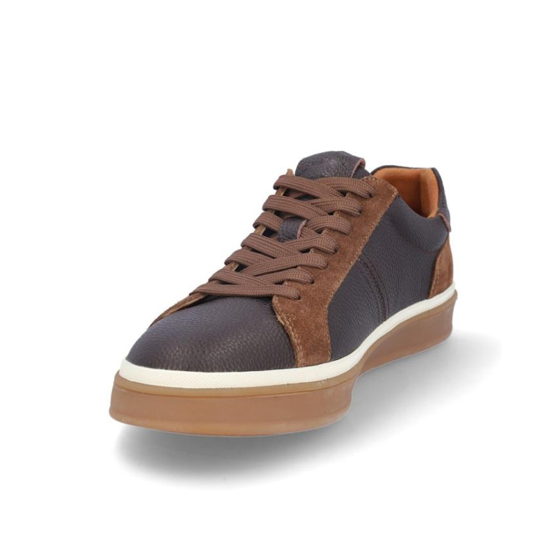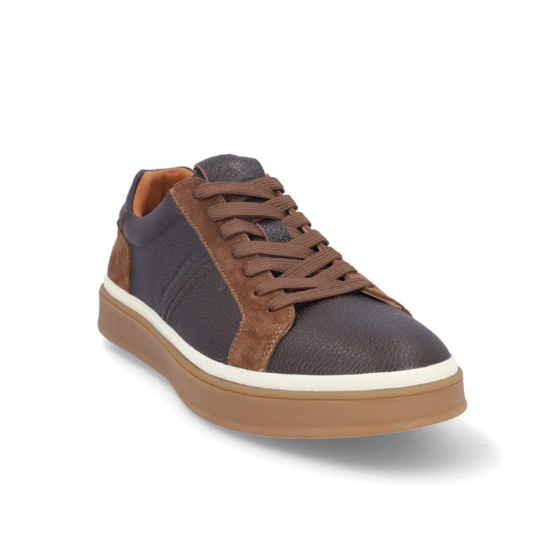Deportivos caballero Kangaroos fabricados en piel marron, cierre de cordones, forro combinado piel y textil, plantilla textil extraíble termoconformada, suela de 3 cm de plataforma. Composición: Empeine: Piel. Forro: Piel/Textil. Plantilla: Textil. Suela: Fibra sintética. Componente principal: Piel