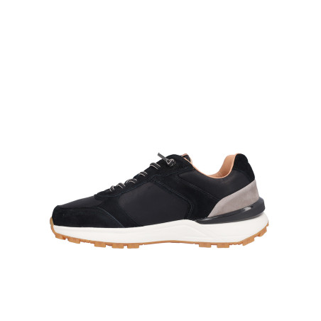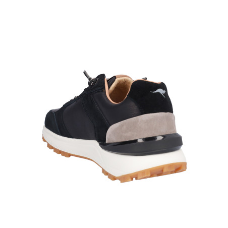 Deportivos caballero Kangaroos combinados piel y ante color negro y gris, cierre con cordones elasticos, Forro textil con vista de piel, plantilla textil extraible termoconformada, suela de 4,5 cm de altura. Composición: Empeine: Piel/ante. Forro: Piel/textil. Plantilla: Textil. Suela: fibra sintetica. Componente principal: Piel