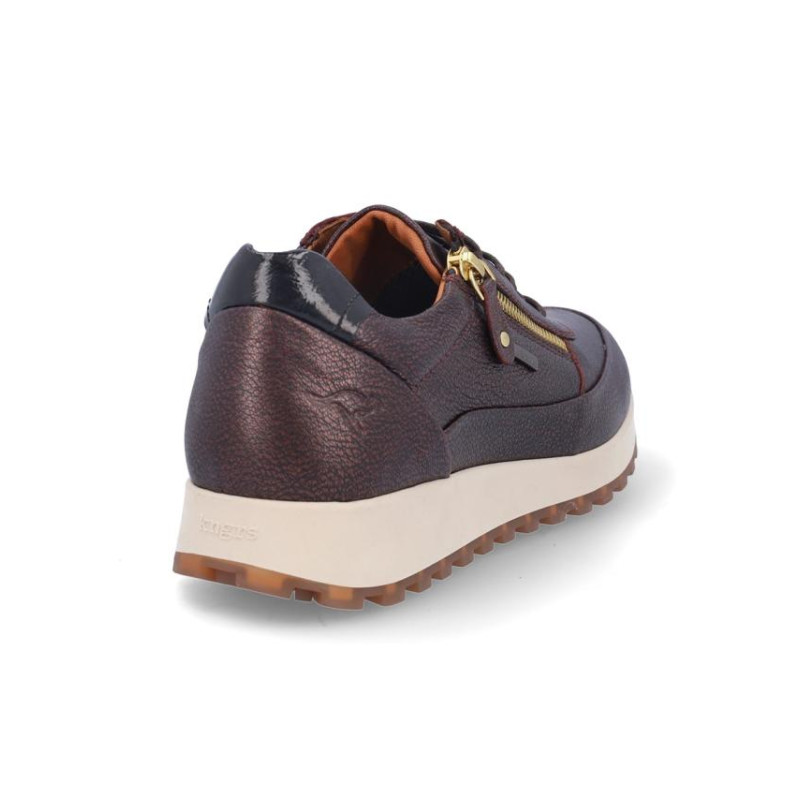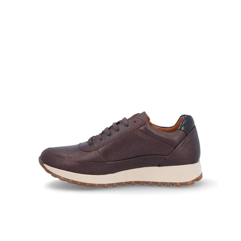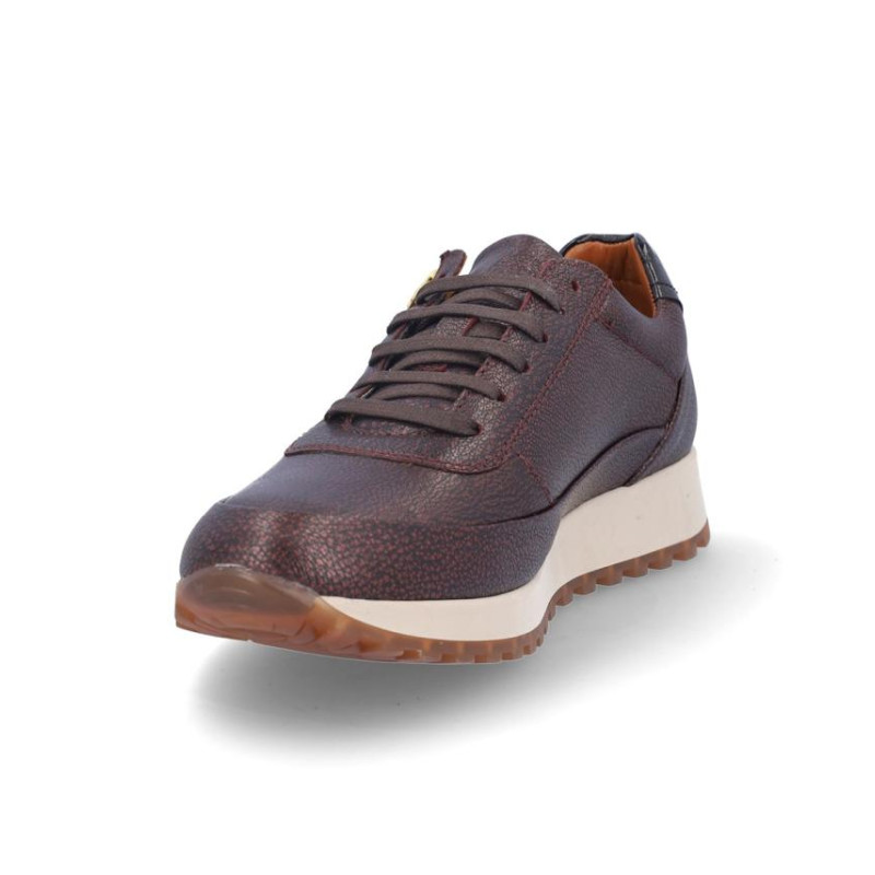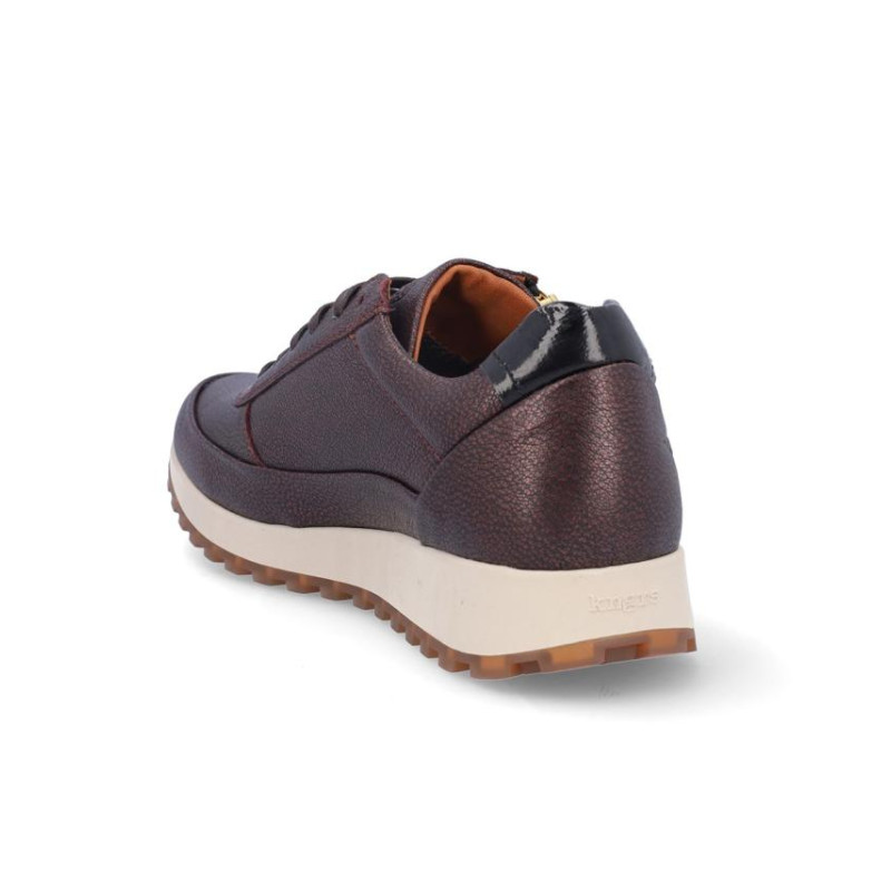 Deportivo de señora Kangaroos en piel color burdeos metalizado, con membrana resistente al agua y tecnología XDRY. Cierre con cordones y cremallera en parte exterior para facilitar la puesta y retirada. Forro textil con vista de piel, plantilla textil extraíble termoconformada, suela de 3 cm altura. Composición: Empeine: Piel. Forro: Piel/textil. Plantilla: Textil. Suela: Fibra sintética. Componente principal: Piel