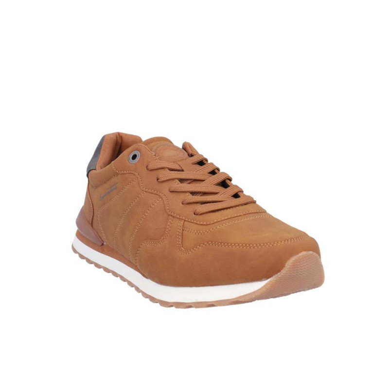 Deportivo de caballero Bonaventure fabricados en piel camel, cierre de cordones elasticos, forro combinado piel vacuno y textil, plantilla textil extraible termoconformada, suela de phylon de 4 cm altura. Composición: Empeine: Piel. Forro: Piel/Textil. Plantilla: Textil. Suela: Fibra sintética. Componente principal: Piel