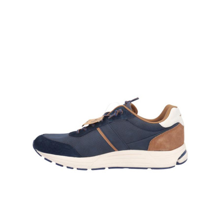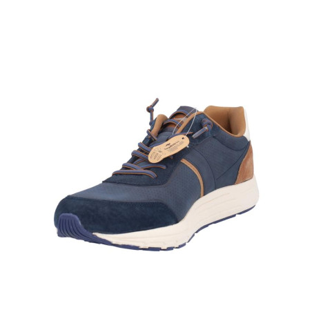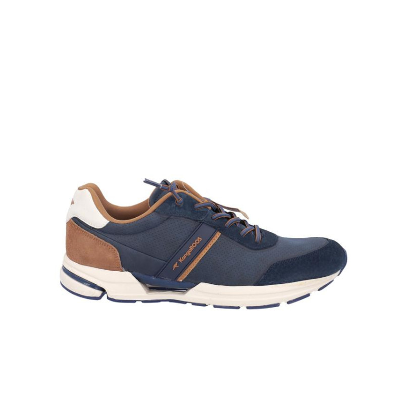 Deportivos hombre kangaroos, fabricado en piel combinado con otros materiales color marino y camel, cierre de cordones, forro textil, plantilla textil extraible termoconformada, suela de 3 cm de altura. Composición: Empeine: Piel combinado con otros materiales. Forro: Piel. Plantilla: Textil. Suela: Fibra sintética. Componente principal: Piel combinado con otros materiales