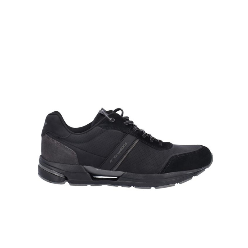 Deportivos hombre kangaroos, fabricado en piel combinado con otros materiales color negro, cierre de cordones, forro textil, plantilla textil extraible termoconformada, suela de 3 cm de altura. Composición: Empeine: Piel combinado con otros materiales. Forro: Piel. Plantilla: Textil. Suela: Fibra sintética.