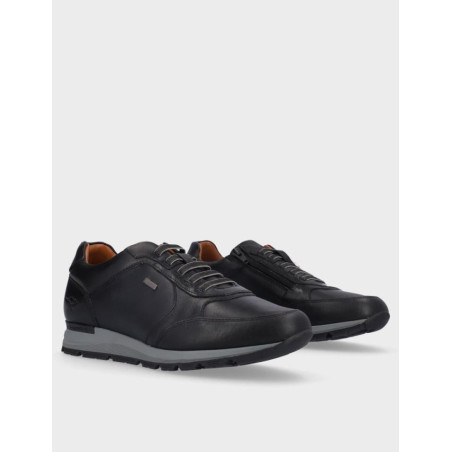 Deportivos hombre Kangaroos fabricados en piel negro, cierre con cordones, forro en piel con membrana resistente al agua y tecnología XDRY, suela de 3 cm altura, plantilla textil extraible termoconformada, fabricado en España. Composición: Empeine: Piel. Forro: Piel. Plantilla: Textil. Suela: Fibra sintética. Componente principal: Piel