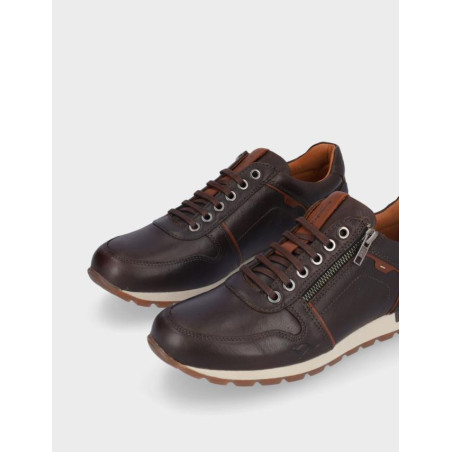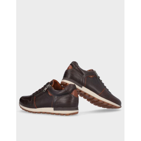 Deportivo Kangaroos hombre fabricado en piel marrón, forro de piel, cierre de cordones y cremallera lateral, plantilla textil extraible temoconformada, suela de 3 cm altura, fabricado en España. Composición: Empeine piel, forro piel, plantilla textil, suela de fibra sintética. Componente principal: Piel.