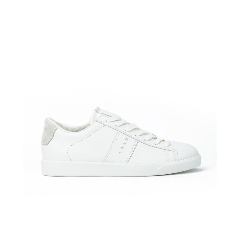 Sneaker cordones marca ECCO modelo CASCO SEÑORA STREET. Fabricado en piel blanco. Suela blanca personalizada.
