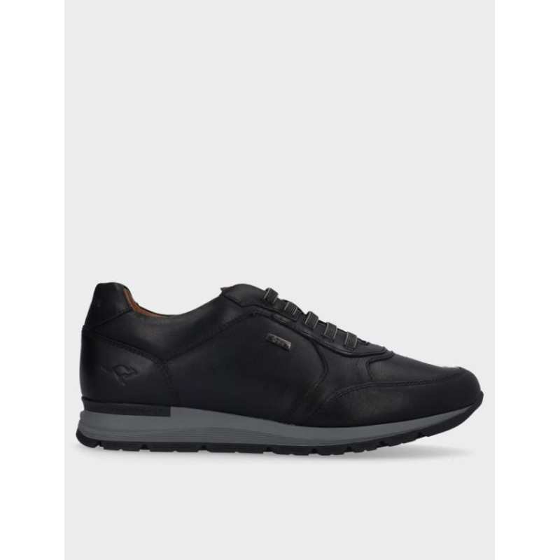 Deportivos hombre Kangaroos fabricados en piel negro, cierre con cordones, forro en piel con membrana resistente al agua y tecnología XDRY, suela de 3 cm altura, plantilla textil extraible termoconformada, fabricado en España. Composición: Empeine: Piel. Forro: Piel. Plantilla: Textil. Suela: Fibra sintética. Componente principal: Piel
