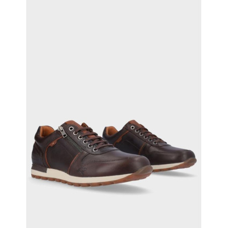 Deportivo Kangaroos hombre fabricado en piel marrón, forro de piel, cierre de cordones y cremallera lateral, plantilla textil extraible temoconformada, suela de 3 cm altura, fabricado en España. Composición: Empeine piel, forro piel, plantilla textil, suela de fibra sintética. Componente principal: Piel.