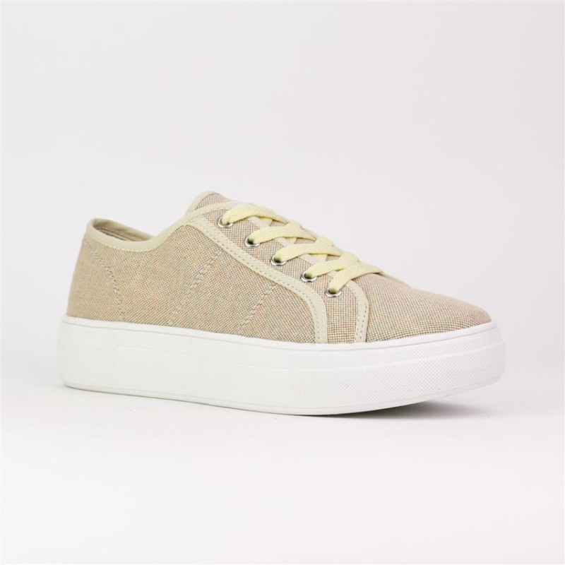 SNEAKER CHICA BEIGE PLATAFORMA BLANCA