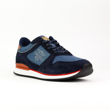 SNEAKER CABALLERO CORDONES, SERRAJE MARINO COMBINADO CON JEANS. PISO LIGERO MICROPOROSO